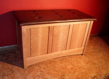 -Toy chest made of quarter-sawn white oak with full-grain leather