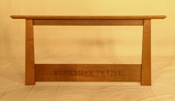 hand-carved "REMEMBER TO LIVE"