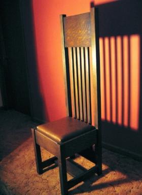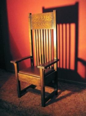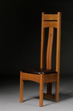 -Tall curved back chair made of fumed quarter-sawn white oak, and full grain