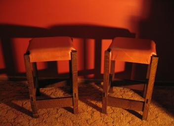 -Quarter-sawn white oak bar stools with full-grain leather seats
