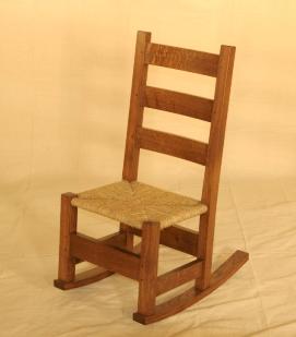 -Youth rocking chair made of fumed quarter-sawn white oak and rush seat