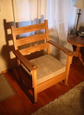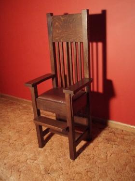 -Tall curved back chair made of fumed quarter-sawn white oak, and full grain