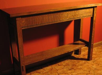 -Fumed quarter-sawn white oak hall table with true