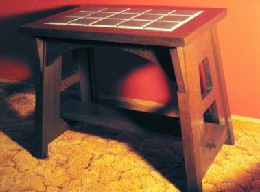 -Tile-top table made of quarter-sawn white oak